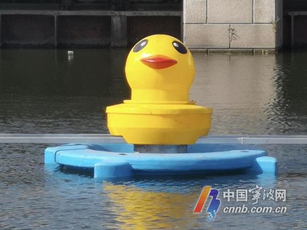 这两天,日湖水面上“蹿出”一只萌萌的“小黄鸭”,不停快速运转着。“其实这是一台水车式增氧涌浪机,也是我区第一台卡通造型的涌浪机。”江北区治水办工作人员说。